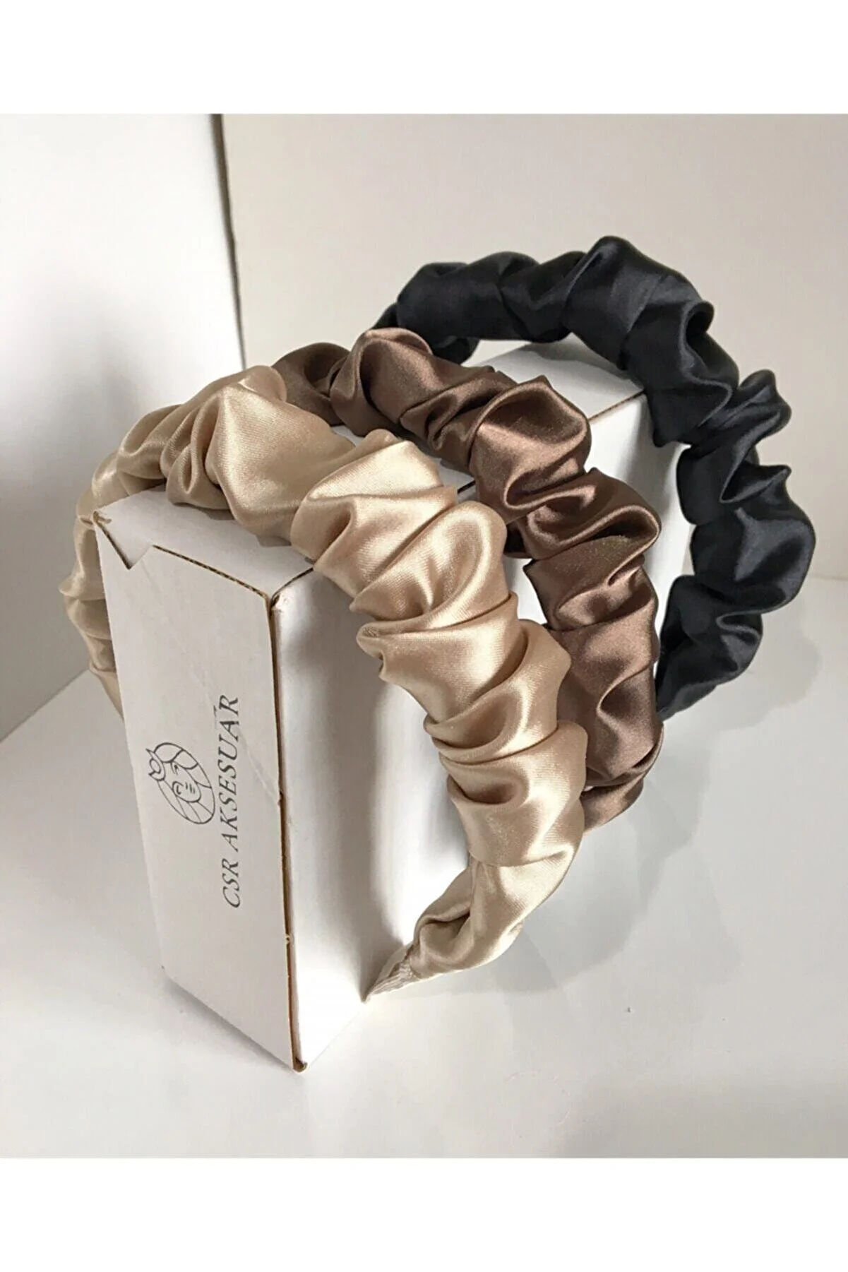 3'lü Büzgülü Saten Taç Seti